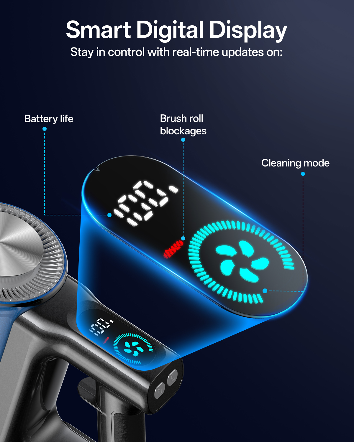 • Our cordless stick vacuum is equipped with bright LED headlights, so you can effortlessly spot dust and debris in dimly lit spaces. With its incredible 180° swivel and 90° tilt, you can easily maneuver under furniture and cabinets, ensuring no dust bunnies are left behind. Experience the joy of a cleaner home with this thoughtfully designed tool that makes cleaning a breeze!