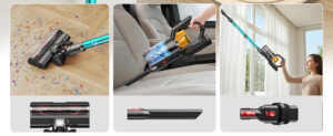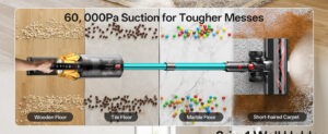 - 60-Minute Extended Runtime: Powered by high-performance lithium-ion technology, our cordless vacuum delivers up to 60 minutes of continuous cleaning power on a single charge (Max mode: 20-25 mins). The smart battery management system ensures stable power output throughout the entire cleaning process, making it ideal for uninterrupted whole-house cleaning.