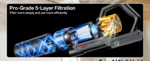 - LED Headlight for Cleaning Pet Hair: Specially designed for pet owners, the LED-illuminated floor nozzle reveals hidden pet hair and dander in dark corners, under furniture, and along baseboards. Bright lighting ensures no strand of pet hair goes unnoticed, while the anti-tangle mechanism prevents hair wrap for effortless cleanup.